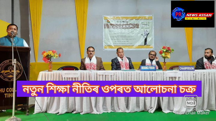টিহু অঞ্চলৰ উচ্চশিক্ষাৰ অনুষ্ঠান টিহু মহাবিদ্যালয়ত কালিৰে পৰা দুদিনীয়া কাৰ্যসূচীৰে নতুন শিক্ষানীতি-২০২০ৰ ওপৰত ৰাষ্ট্ৰীয় পৰ্যায়ৰ এক আলোচনা চক্ৰৰ আজি সামৰণি হয় | সৰস্বতী বন্দনাৰে আৰম্ভ কৰা আলোচনা চক্ৰখনত বন্তি প্ৰজ্বলনেৰে শুভাৰম্ভ কৰি বিষয়বস্তুৰ ওপৰত বক্তব্য দিয়ে ,টিহু মহাবিদ্যালয়ৰ অধ্যক্ষ ড০ কিশোৰ কুমাৰ তালুকদাৰে | টিহু মহাবিদ্যালয়ৰ শিক্ষা বিভাগৰ সহকাৰী অধ্যাপক ড০ সুনীল কুমাৰ দাসে আঁতধৰা আলোচনা চক্ৰখনত আদৰণি ভাষণ দিয়ে নেহুৰ অধ্যাপক ড০ বি পি চাহুৱে | ড০ সুমিত আগৰৱালাই সঞ্চালনা কৰা আলোচনা চক্ৰখনত সমল ব্যক্তি হিচাপে উপস্থিত থাকি বিষয় বস্তুৰ ওপৰত বহল ব্যাখ্যা আগবঢ়ায় সজল শিক্ষক প্ৰশিক্ষণ মহাবিদ্যালয় কহিমাৰ অধ্যক্ষ ড০ গনেশ মুছাহাৰী , ড০ বি পি চাহু আৰু মেঘালয়ৰ ইউ এচ টি এমৰ সহযোগী অধ্যাপক ড০ এচ যোশীয়ে | আলোচনা চক্ৰখনত টিহু মহাবিদ্যালয়, সৰ্বেশ্বৰ দাস মহাবিদ্যালয় , বি এড কলেজ আৰু বিভিন্ন বিদ্যালয়ৰ শিক্ষক-ছাত্রৰ উপৰি টিহু মহাবিদ্যালয়ৰ স্নাতকোত্তৰ শ্ৰেণীৰ শিক্ষাৰ্থীসকলে অংশ গ্ৰহণ কৰে।