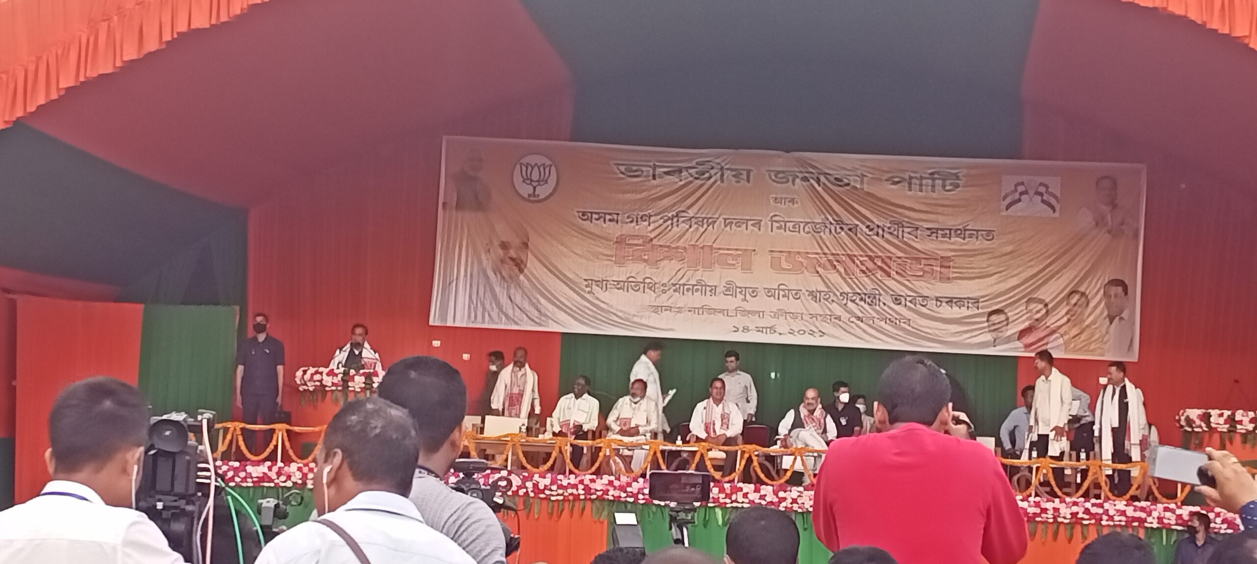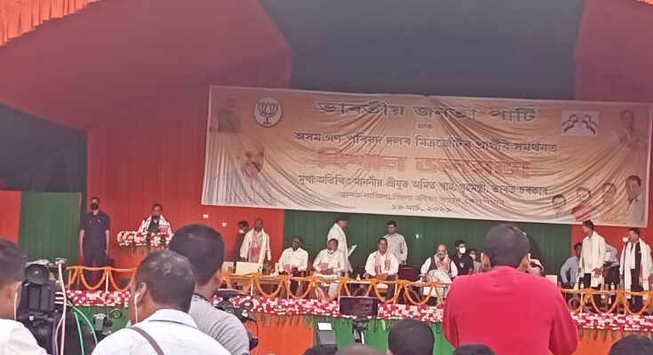 কেন্দ্ৰীয় গৃহমন্ত্ৰীৰ তথা ভাৰতীয় জনতা পাৰ্টিৰ জেষ্ঠ্য নেতা অমিত শ্বাহে ১০৪ নং নাজিৰা বিধানসভা সমষ্টিত এক বিশাল গণ সমাৱেশ নাজিৰা নগৰ খেলপথাৰত অংশগ্ৰহণ কৰি নাজিৰা সমষ্টিত কংগ্ৰেছৰ দীৰ্ঘদিনীয়া অকমণ্য ৰাজনীতিক তুলা-ধূনা দিয়ে ৷লগতে কংগ্ৰেছ-এ আই ইউ ডি এফৰ মিত্ৰতাক ৰাজ্যৰ থলুৱা লোকসকলৰ প্ৰতি অশনিৰ সংকেত বুলিও মন্তব্য কৰে৷সভাত উপস্থিত থাকে ৰাজ্যৰ বিত্ত,স্বাস্থ্য ,লোক নিৰ্মাণ বিভাগৰ নেতা ড° হিমন্ত বিশ্ব শৰ্মাই এই নিৰ্বাচনী যুঁজ সভ্যতা ৰক্ষাৰ যুজঁ,বহিৰাগত শত্ৰুৰ বিৰুদ্ধে কৰা যুঁজ বুলি ভাষণত উল্লেখ কৰে৷সভাত উপস্থিত থাকে সাংসদদ্বয় তপন কুমাৰ গগৈ,কামাখ্যা প্ৰসাদ তাছা,প্ৰাৰ্থীসকল ক্ৰমে ময়ুৰ বৰগোহাঁই,যোগেন মহন,সুৰভি ৰাজকুমাৰী,অগপৰ কেন্দ্ৰীয় সাধাৰণ সম্পাদক হিৰণ্য কোৱঁৰ,সম্পাদক তুলসী গগৈ,বুৰঞ্জীবিদ তথা ৰাজ্যিক নেতা দয়ানন্দ বৰগোহাঁই,জেষ্ঠ্য নেতা শিৱ বদ্ৰা আদিকে ধৰি বহু দলীয় নেতা আৰু কাৰ্যকৰ্তা৷ভাষণত সকলোৱে দলীয় প্ৰাৰ্থীসকলক জয়ী কৰোৱাৰ বাবে উপস্থিত ৰাইজ আৰু নাজিৰা,মাহমৰা, শিৱসাগৰ,থাওৰা আৰু আমগুৰিবাসীক আহ্বান জনায়৷