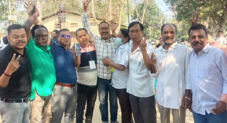 PR NEWS ASSAM নাজিৰা ঃ সমগ্ৰ ৰাজ্যৰ লগতে নাজিৰা মহকুমা অন্তৰ্গত নাজিৰা আৰু শিমলুগুৰি পৌৰসভাৰ নিৰ্বাচনৰ ফলাফলো ঘোষণা কৰা হয়। বিৰোধী দলৰ দলপতি দেৱব্ৰত শইকীয়াৰ লগতে সমষ্টিটোত কংগ্ৰেছক বিধস্ত কৰি নাজিৰা আৰু শিমলুগুৰি পৌৰসভা বিজেপি-অগপ মিত্ৰজোটে দখল কৰে৷ শিমলুগুৰি পৌৰসভাৰ ৪ নং ৱাৰ্ডত ইতিমধ্যে বিনা প্ৰতিদ্বন্দিতাৰে বিজেপিৰ প্ৰাৰ্থী বিজয়ী হৈছে। আজি পুৱা ৮ বজাৰ পৰা সম্পূৰ্ণ নিৰাপত্তা ব্যৱস্থাৰ মাজত নাজিৰাৰ ১০ টা ৱাৰ্ডৰ আৰু শিমলুগুৰিৰ ৯ টা ৱাৰ্ডৰ ভোট গণনা আৰম্ভ কৰা হয়। গণনাৰ অন্তত আনুষ্ঠানিক ভাৱে ফলাফল ঘোষণা কৰাৰ লগতে বিজয়ী প্ৰাৰ্থী সকলক প্ৰমাণ পত্ৰ প্ৰদান কৰা হয়। নাজিৰা পৌৰসভাৰ ১,২,৩,৬,৭,৯ আৰু ১০ নং ৱাৰ্ডত বিজেপিৰ প্ৰাৰ্থী আৰু ৪,৫,৮ নং ৱাৰ্ডত অগপ মিত্ৰজোঁটৰ প্ৰাৰ্থীয়ে বিজয় সাব্যস্ত কৰিবলৈ সক্ষম হয়। আনহাতে শিমলুগুৰি পৌৰসভাৰ ১০ টা ৱাৰ্ডৰ ৯ টা ৱাৰ্ডতে বিজেপিৰ প্ৰাৰ্থীয়ে জয়লাভ কৰাৰ বিপৰীতে ৬ নং ৱাৰ্ডত কংগ্ৰেছৰ প্ৰাৰ্থীয়ে জয়লাভ কৰে। তদুপৰি ৪ নং ৱাৰ্ডত বিজেপিৰ প্ৰাৰ্থীয়ে বিনা প্ৰতিদ্বন্দিতাৰে জয় লাভ কৰে। দুয়োখন পৌৰ সভাৰ বিজয়ী প্ৰাৰ্থীৰ তালিকাখন তলত দিয়া ধৰণৰ -নাজিৰা পৌৰসভাৰ বিজয়ী প্ৰাৰ্থীসকল ৱাৰ্ড নং ১- বনশ্ৰী দাস (৫৪৭), ৱাৰ্ড নং ২ – গীতাঞ্জলি দত্ত (৩৭৪), ৱাৰ্ড নং ৩ – মঞ্জু মেচ (৫৯৬), ৱাৰ্ড নং ৪ – নাছিমুদ্দিন আহমেদ (১৯৩), ৱাৰ্ড নং ৫ – গুণ গোবিন্দ দত্ত (২৫৮), ৱাৰ্ড নং ৬ – শুৱলা দাস (৩১৭), ৱাৰ্ড নং ৭ – ঊষা ৰাণী দাস হাজৰিকা (৩৬৩), ৱাৰ্ড নং ৮ – চিমলী বৰা (২৫৩), ৱাৰ্ড নং ৯ – লখিমী বৰ্মন (৫০৩) আৰু ৱাৰ্ড নং ১০ – বৰ্ণালী চেতিয়া (৫৩৭) । শিমলুগুৰি পৌৰসভাৰ বিজয়ী প্ৰাৰ্থীসকল। ৱাৰ্ড নং ১- প্ৰশিত নাগ (২৮১), ৱাৰ্ড নং ২ – অবন্তি লাহন (৩০৩), ৱাৰ্ড নং ৩ – চেব্ৰিন ৰহমান (৩৪২), ৱাৰ্ড নং ৫ – বসন্তী চেতিয়া গগৈ (৩৩৮), ৱাৰ্ড নং ৬ – স্বপ্না গগৈ শইকীয়া (৪১১), ৱাৰ্ড নং ৭ – পুনম দেৱী (২৪৮), ৱাৰ্ড নং ৮ – ক্ষীৰোদ শেনছোৱা (৪১০), ৱাৰ্ড নং ৯ – কবিতা মেচ (৩৮২) আৰু ৱাৰ্ড নং ১০ – জয়ন্ত বৰগোহাঁই (১৭৬)।