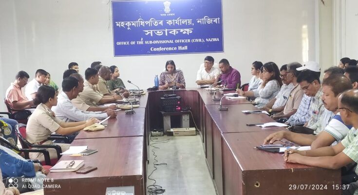 PR NEWS ASSAM ২৯ : আগন্তুক ৭৮ সংখ্যক স্বাধীনতা দিৱস উদ্যাপনৰ প্ৰস্তুতিৰ সন্দৰ্ভত আজি নাজিৰা মহকুমাধিপতি কাৰ্য্যালয়ৰ সভাকক্ষত অতিৰিক্ত আয়ুক্ত তথা ভাৰপ্ৰাপ্ত মহকুমাধিপতি আয়ুষী জৈনৰ সভাপতিত্বত আৰু নাজিৰা বিধান সভা সমষ্টিৰ বিধায়ক দেৱব্ৰত শইকীয়াৰ উপস্থিতিত এখন সভা অনুষ্ঠিত হয় ৷মহকুমা প্ৰশাসনৰ বিষয়া,বিভিন্ন বিভাগৰ বিষয়াসকলৰ উপৰি আৰক্ষী প্ৰশাসন, অৰ্দ্ধসামৰিক বাহিনীৰ প্ৰতিনিধি, বেংক, বেচৰকাৰী সামাজিক দল-সংগঠন, নেতৃস্থানীয় ব্যক্তিৰ উপস্থিতিত আয়োজিত এই সভাত সমাগত স্বাধীনতা দিৱস উদযাপন সম্পৰ্কে বিশদভাৱে আলোচনা কৰা হয় ৷ আনহাতে, স্বাধীনতা দিৱস উদযাপন সাফল্যমণ্ডিত কৰাৰ বাবে সময়মতে প্ৰস্তুতি সম্পূৰ্ণ কৰাৰ অৰ্থে বিভিন্ন বিভাগক নিজৰ নিজৰ দায়িত্বসমূহ আনুষ্ঠানিকভাৱে অৰ্পণ কৰা হয় ৷ সভাত স্বাধীনতা দিৱসৰ কাৰ্যসূচীত কুচকাৱাজৰ বাবে প্ৰয়োজনীয় অনুশীলন আদিৰ ব্যৱস্থা কৰিবলৈ নাজিৰা মহকুমা আৰক্ষী বিষয়াক দায়িত্ব অৰ্পণ কৰা হয়। লগতে প্ৰতিটো বিভাগৰ মুৰব্বীক তেওঁলোকৰ ওপৰত ন্যস্ত কৰা দায়িত্বসমূহ সময়মতে পালন কৰিবলৈ আহ্বান জনোৱা হয়৷ স্বাধীনতা দিৱস সাফল্যমণ্ডিত কৰাৰ বাবে মহকুমা প্ৰশাসনৰ ফালৰ পৰা নাজিৰাবাসী ৰাইজৰ সহায়-সহযোগিতা কামনা কৰা হয়।
