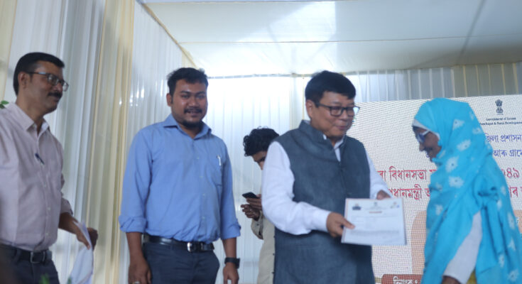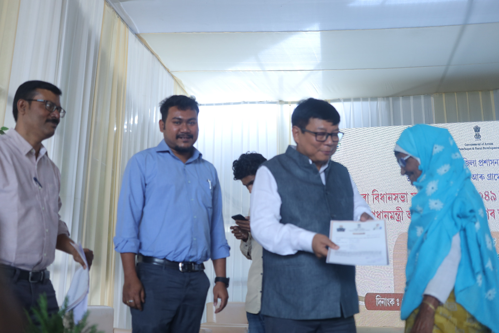 PR NEWSASSAM: ১৯ মাৰ্চ:নাজিৰা সমজিলা প্ৰশাসনৰ সৌজন্যত তথা অসম চৰকাৰৰ পঞ্চায়ত আৰু গ্ৰামোন্নয়ন বিভাগৰ অধীনত নাজিৰা বিধান সভা সমষ্টিৰ মুঠ ৫০৪৯ গৰাকী হিতাধিকাৰীক আজি নাজিৰা মেকিপুৰ পূজা ফিল্ডত প্ৰধানমন্ত্ৰী আৱাস যোজনা – গ্ৰামীণৰ প্ৰথম কিস্তিৰ ধনৰাশিৰ অনুমোদন পত্ৰ আনুষ্ঠানিকভাৱে বিতৰণ কৰা হয়। এই অনুষ্ঠানত মুখ্য অতিথি হিচাপে উপস্থিত থাকি নাজিৰা বিধান সভা সমষ্টিৰ মাননীয় বিধায়ক শ্ৰীযুত দেৱব্ৰত শইকীয়াই ১৯ গৰাকী নিৰ্বাচিত হিতাধিকাৰীক মঞ্চত অনুমোদন পত্ৰ বিতৰণ কৰে। উল্লেখ্য যে, প্ৰথম কিস্তিৰ ধন হিচাপে ৩৭,৫০০ টকা ঘৰ নিৰ্মাণৰ বাবে নিৰ্বাচিত হিতাধিকাৰী সকলৰ বেংক একাউণ্টত জমা দিয়া হব। উক্ত অনুষ্ঠানত অসম চৰকাৰৰ আৰ্টফেডৰ উপাধ্যক্ষ শ্ৰীযুত প্ৰহ্লাদ গোৱালা, জিলা পৰিষদৰ প্ৰাক্তন সভাপতি লক্ষী সন্দিকৈ, নাজিৰা, শিমলুগুৰি আৰু আমগুৰি পৌৰসভাৰ সভানেত্ৰী ক্ৰমে বৰ্ণালী চেতিয়া, কবিতা মেচ আৰু অনামিকা বৈষ্য, নাজিৰা ৰাজহ চক্ৰৰ চক্ৰ বিষয়া, সমজিলা প্ৰশাসনৰ সহকাৰী আয়ুক্ত সকল, নাজিৰা আৰু আমগুৰিৰ খণ্ড বিষয়া, মহকুমা তথ্য আৰু জনসংযোগ বিষয়াৰ লগতে বিভিন্ন বিভাগৰ মুৰব্বী বিষয়া সকল, সমজিলা প্ৰশাসনৰ কৰ্মচাৰী সকল আৰু স্থানীয় ৰাইজ উপস্থিত থাকে ।