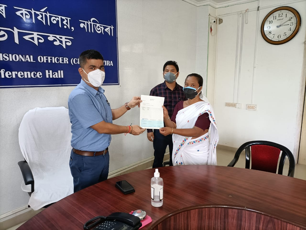 নাজিৰা মহকুমাধিপতি কাৰ্যালয়ৰ সভাকক্ষত মুখ্যমন্ত্ৰী সাহায্য পুঁজিৰ অধীনত ক’ভিড- ১৯ ত স্বামীহাৰা মহিলাক আৰ্থিক সকাহ দিয়াৰ উদ্দেশ্য নাজিৰা মহকুমাৰ অন্তৰ্গত পাঁচগৰাকী মহিলাক ২.৫ লাখ টকাৰ একোখনকৈ চেক মহকুমাধিপতি সব্যসাচী কাশ্যপে প্ৰদান কৰে