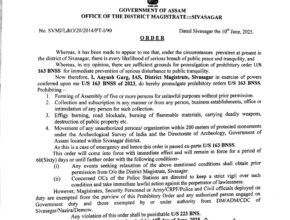 শিৱসাগৰ জিলাত শান্তি ভংগৰ প্ৰতিৰোধৰ সন্দৰ্ভত জিলা আয়ুক্ত আদেশ বলৱৎ