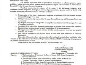 PR NEWS ASSAMঃ শিৱসাগৰ জিলাত ক্ৰমাৎ ছোৱাইন ফ্লুৰ প্ৰাদুৰ্ভাৱ বৃদ্ধি পোৱাত প্ৰায় শতাধিক গাহৰিৰ মৃত্যু হৈছে৷জিলা প্ৰশাসনে গাহৰি মাংস বিক্ৰীত নিষেধাজ্ঞা জাৰি কৰিছে৷জিলাৰ অতিৰিক্ত উপায়ুক্ত সব্যসাচী কাশ্যপ ১৪৪ ধাৰা জাৰি …